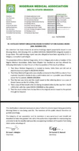 As a result, the NMA has called on security agencies to step in and investigate the situation, stressing that the integrity of medical professionals must be protected.