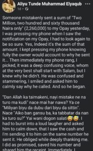 The man, identified as Aliyu Tunde Muhammad Elyaqub on Facebook, shared that the unexpected transfer happened while he was using his phone. Shortly after, the sender reached out, sounding confused and distressed over the error.