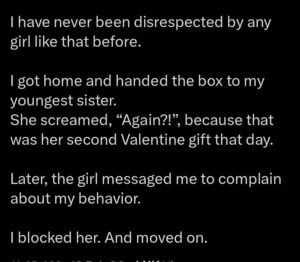 According to him, he later handed the Valentine’s package to his younger sister, who was excited to receive it.
