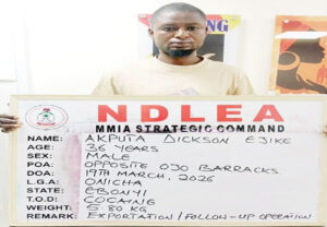 According to NDLEA spokesman Femi Babafemi, officers recovered three jumbo bags containing 237 wraps of cocaine, with a total weight of 5.80 kilograms, from 36-year-old suspect Akputa Ejike. The consignment was reportedly destined for Delhi, India.