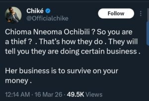 “Chioma Nneoma Ochibili, so you are a thief? That’s how they do. They will tell you they are doing certain business. Her business is to survive on your money.